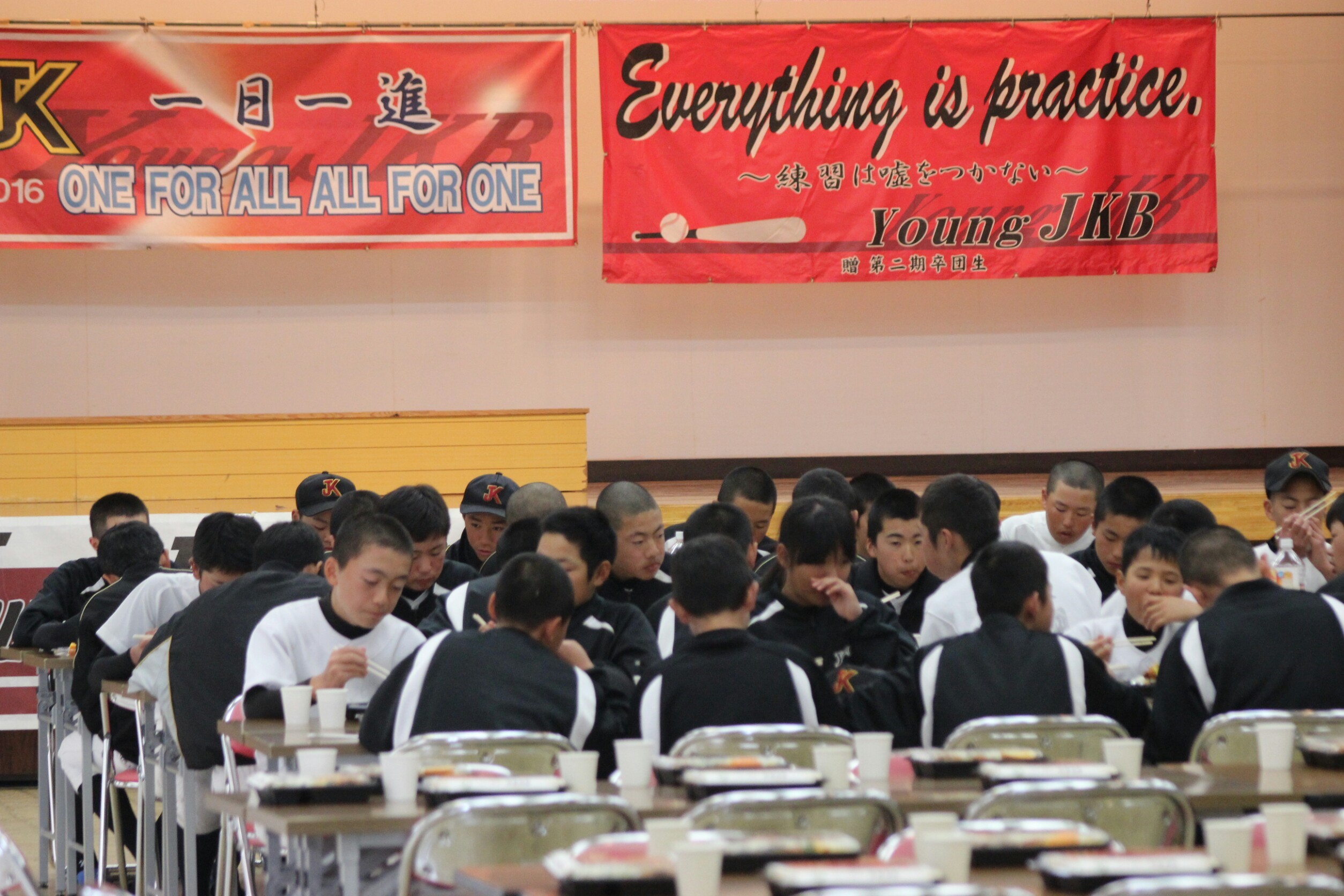 午後からの練習に向け、みんなでお弁当を食べ交流。