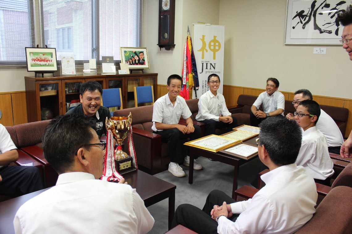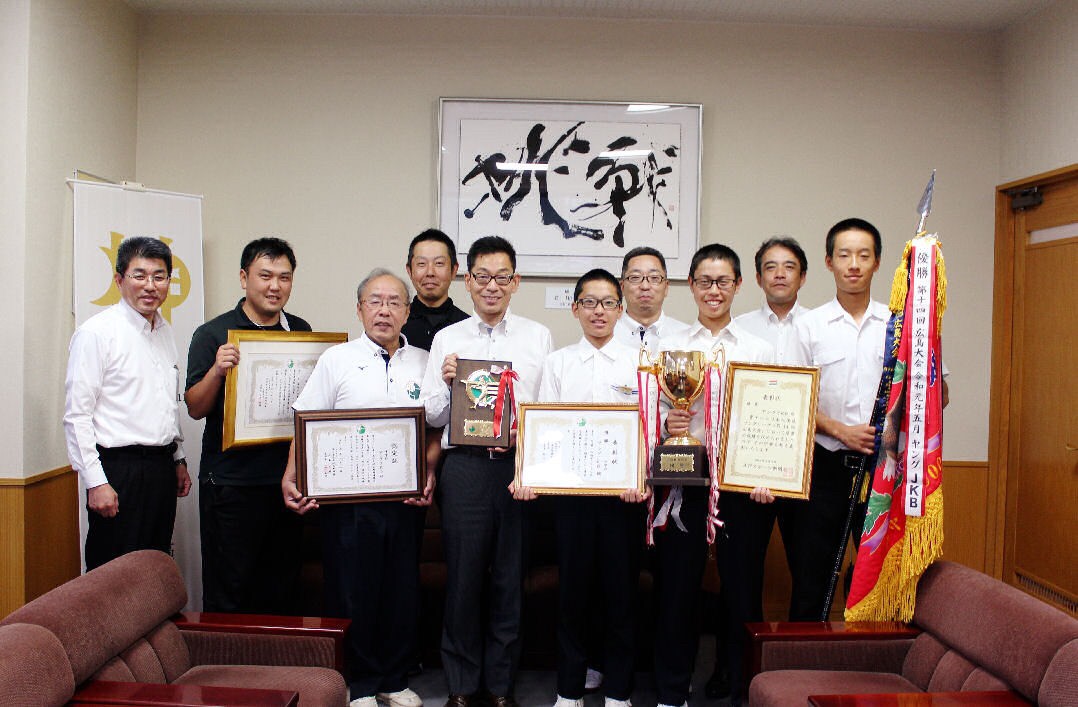 神石高原町長表敬訪問 代表、副代表、監督をはじめチームの選手代表3名が 第27回ヤングリーグ選手権全国大会出場の報告を兼ね 神石高原町長、副町長を表敬訪問しました。 温かい激励のお言葉を頂きました。 今後も、地域に愛され、応援されるチームを目指し頑張ります。 応援よろしくお願いします。 共有: クリックして X で共有 (新しいウィンドウで開きます) X Facebook で共有するにはクリックしてください (新しいウィンドウで開きます) Facebook 関連